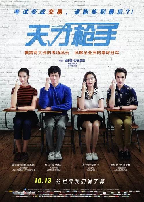 《天才枪手》是一部改编自泰国真实事件的电影,由纳塔吾·彭皮里亚执导,上映于2017年。影片讲述了天才学生小琳(林允儿饰)与富家子弟小巴(陈柏宇饰)联手,通过作弊手段在亚洲地区的高考中牟取暴利的故事。这部电影在泰国上映后,票房大卖,并获得了国际上的广泛关注。